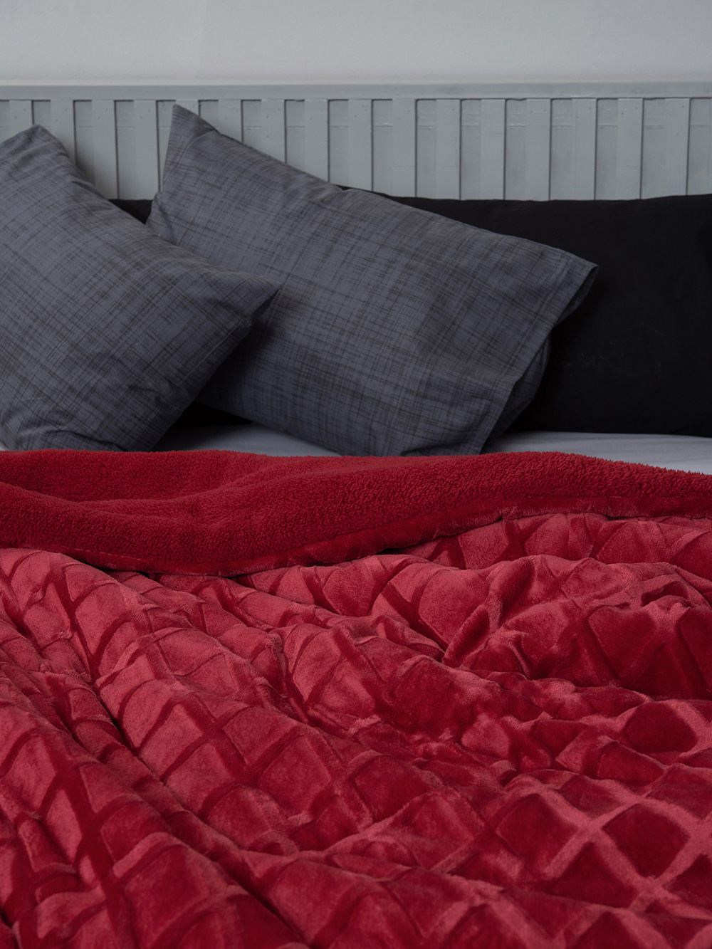 Κουβερτοπαπλωμα Μονό 160×240 Sherpa Collection NADINE από ύφασμα polyester embossed flannel στη μία πλευρά, sherpa στην άλλη, και γέμιση 100% polyester fill 280 γραμμαρίων ανά m².
