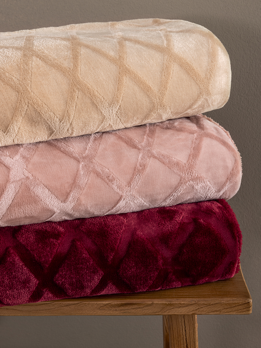 Κουβερτοπάπλωμα Υπέρδιπλο 220×240 Sherpa Collection NADINE/5 από ύφασμα embossed flannel στη μία πλευρά, γούνα sherpa στην άλλη, και γέμιση 100% polyester fill, συνολικού βάρους 700gsm, αφράτο, ζεστό, κατάλληλο για τους χειμερινούς μήνες.