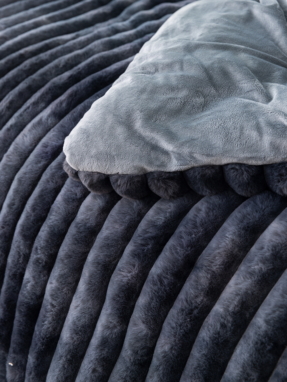 Κουβερτοπάπλωμα Υπέρδιπλο 220×240 Tidi/2 από jacquard rabbit fur, βαφή tie dye, συνολικού βάρους 840gsm με μινκ fleece, αφράτης οικολογικής γούνας, ζεστό, ιδανικό για τους χειμερινούς μήνες.