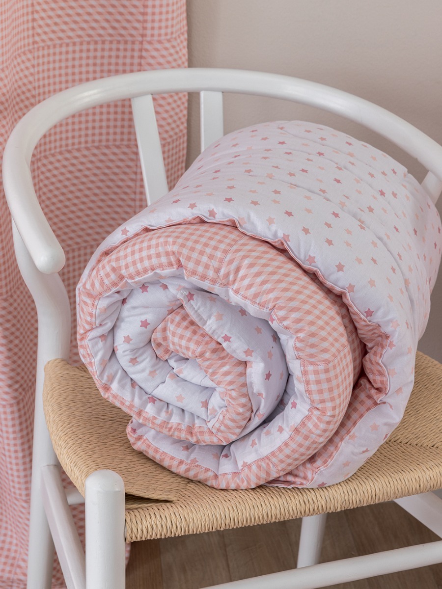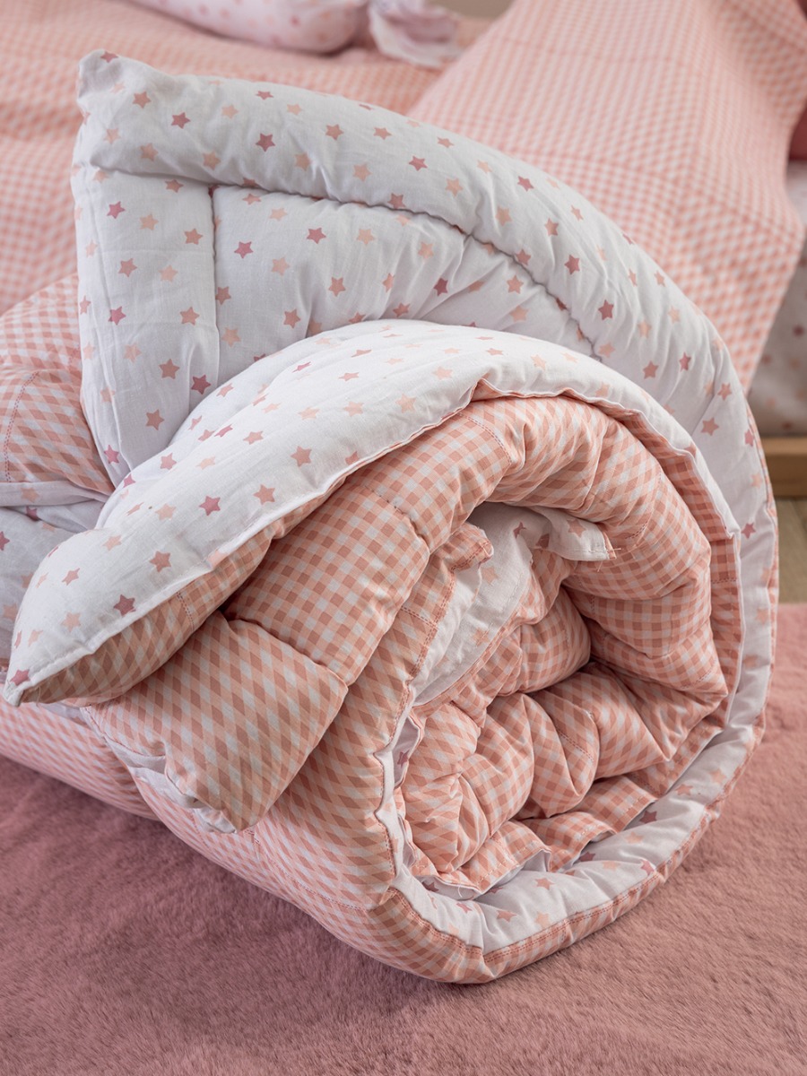 Πάπλωμα Μονό Bon Bon 160×240 BB100-BB101 διπλής όψης, καρό – αστεράκι σχέδιο, από ύφασμα 100% cotton 144 κλωστών ανά τ. ίντσα και εσωτερική γέμιση 100% polyester fill.