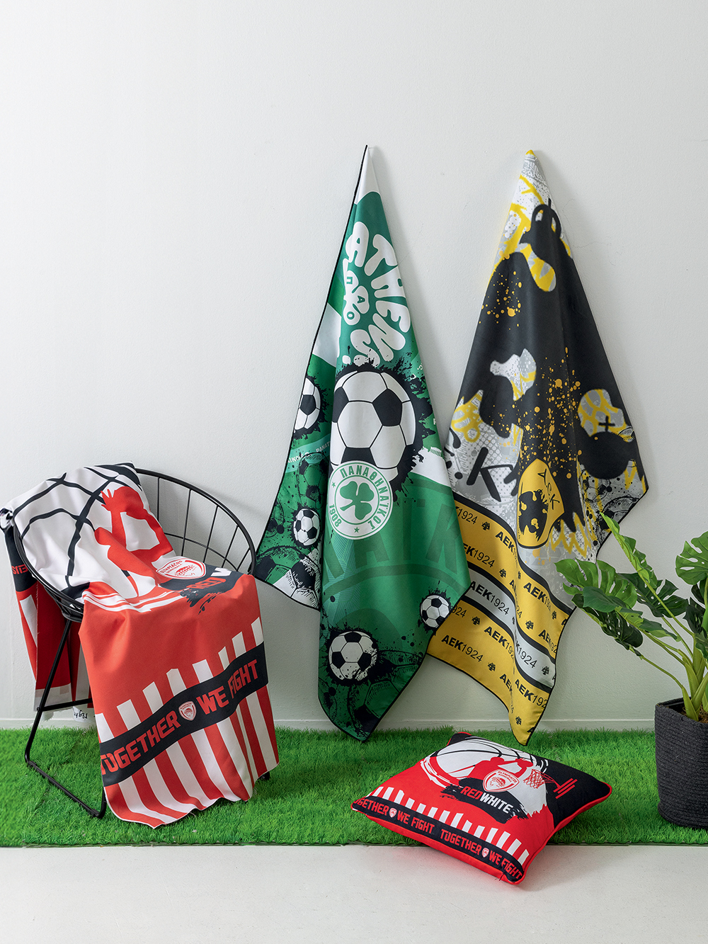 Πετσέτα Θαλάσσης με διαφορετικό σχέδιο στην πίσω όψη Beach Collection 90×160 NM OLYMPIACOS/2 από ύφασμα 100% microfiber 200gsm, digital print, quick dry.