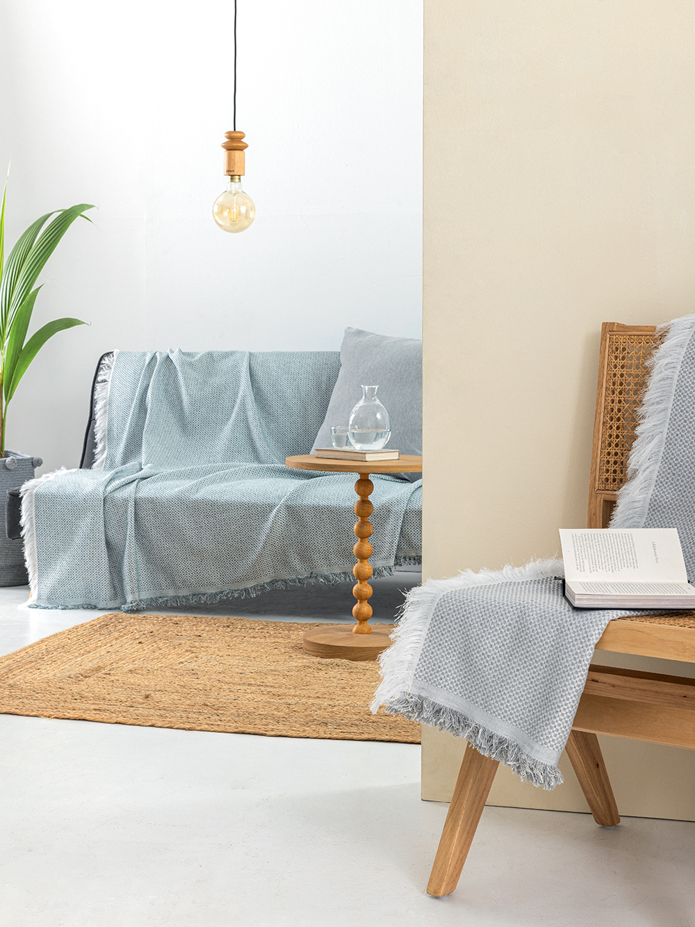 Ριχτάρι Πολυθρόνας 180×180 Throws Collection KIKI, με κρόσια από ύφασμα 20% polyester – 80% βαμβάκι, διπλής όψεως.