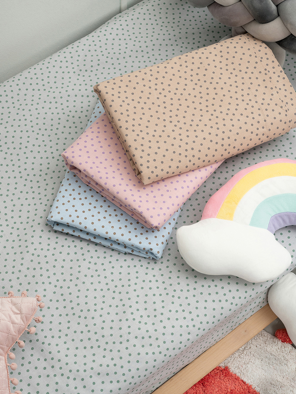 Σεντόνι Κουνιας 70×140+15 CONFETTI από 100% βαμβακερό ύφασμα των 144 κλωστών ανά τ. ίντσα.