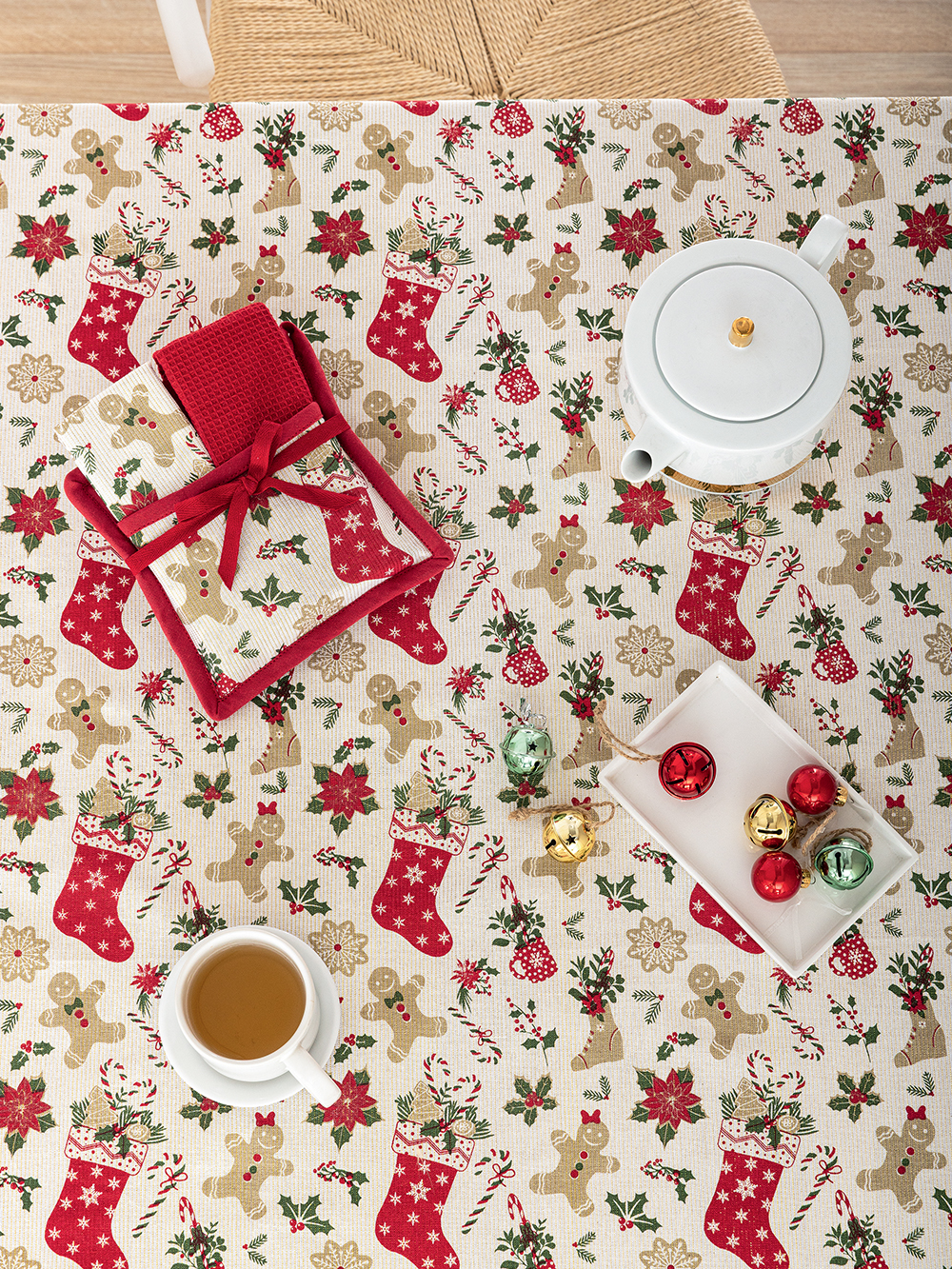 Σετ 2 Πετσέτες Κουζίνας 40×70 με πιάστρα Christmas Collection CC102 από ύφασμα 100% βαμβάκι.