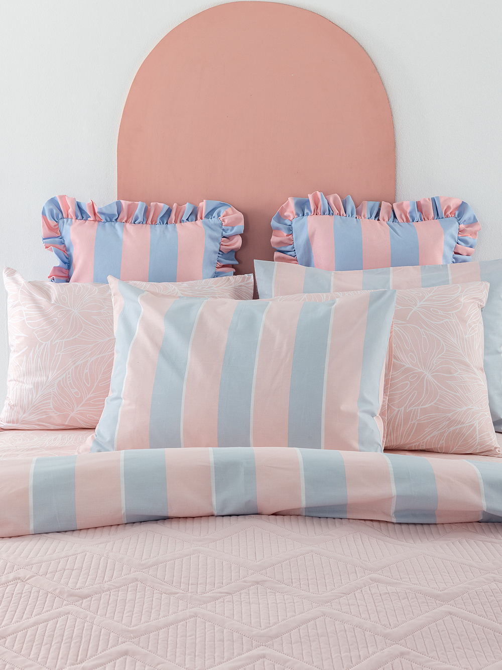 1 Πανωσέντονο 270×260, 1 Κατωσέντονο 270×260, 2 Μαξιλαροθήκες 52×72