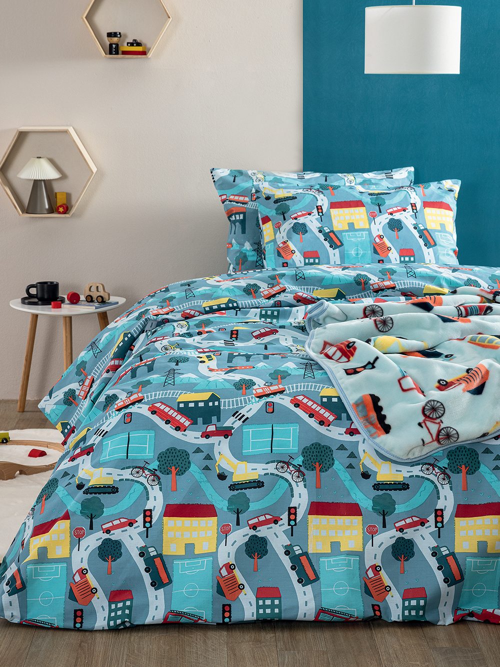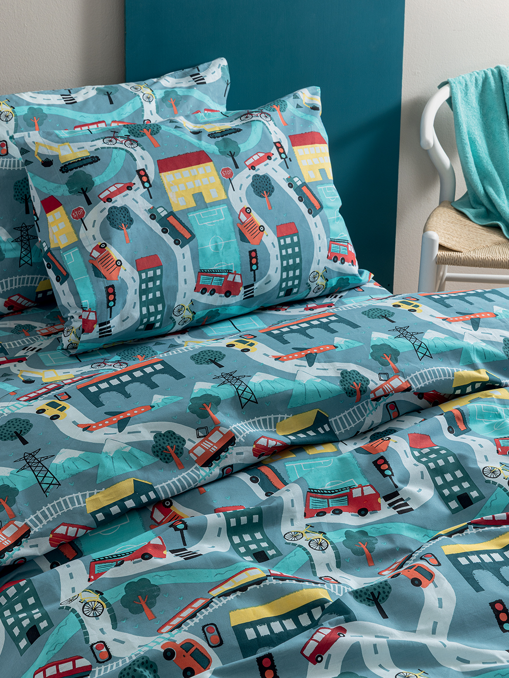 1 Πανωσέντονο 130×170, 1 Κατωσέντονο με λάστιχο 75×140+15 & 1 Μαξιλαροθήκη 40×50