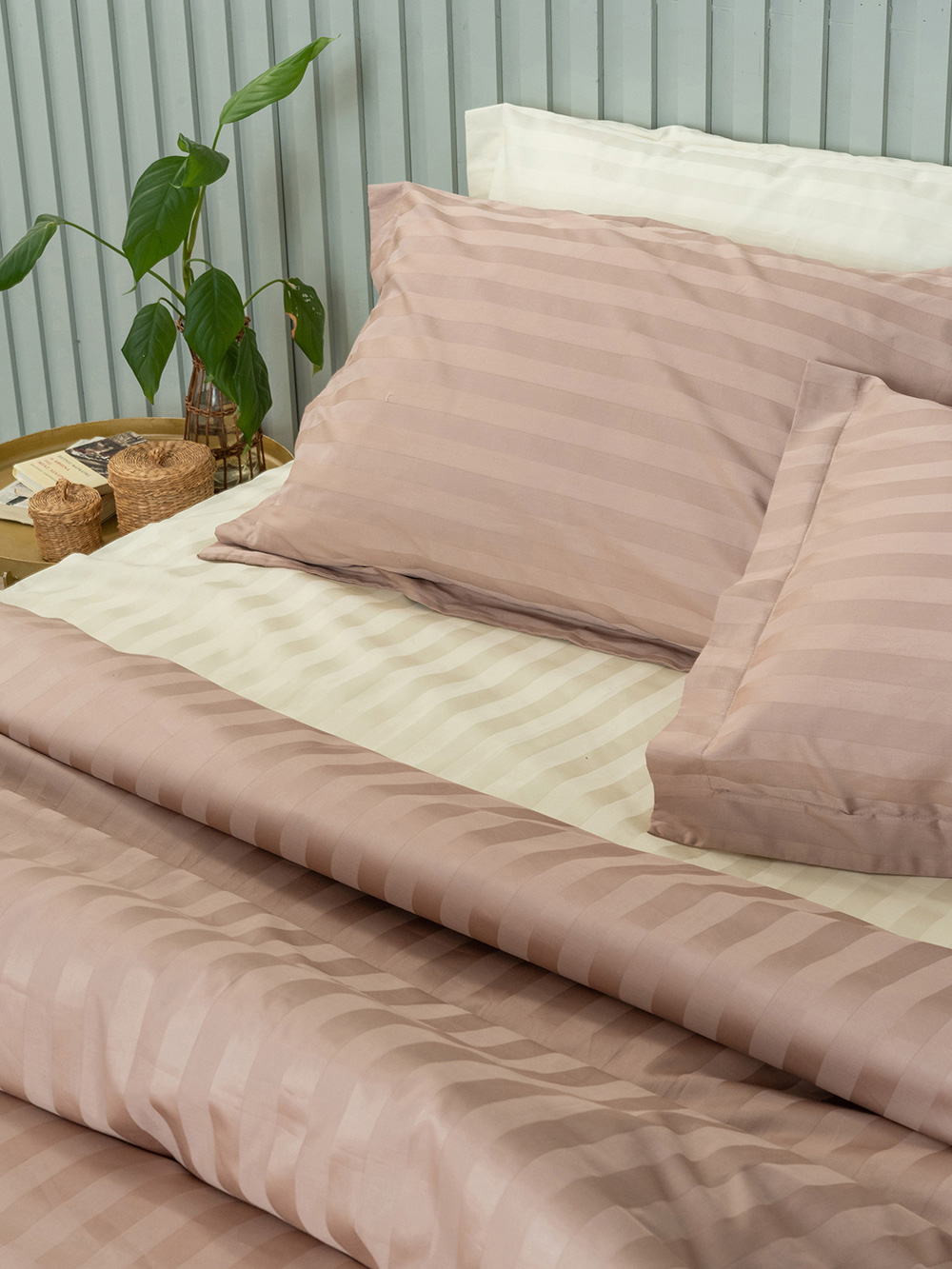 Σετ Υπέρδιπλα Σεντόνια 240×270 SATIN STRIPES ANTIQUE
