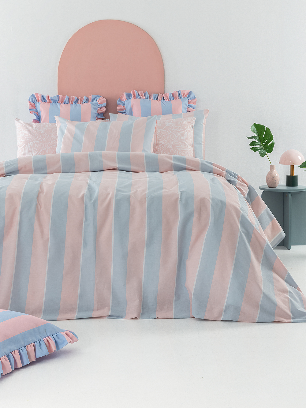 1 Πανωσέντονο 240×260, 1 Κατωσέντονο 240×260 ή 1 Κατωσέντονο με λάστιχο 170×200+32 & 2 Μαξιλαροθήκες 52×72