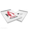 Σημειωματάριο με χοντρό χάρτινο εξώφυλλο, λευκές εσωτερικές σελίδες και μαύρο σπιράλ στο πάνω μέρος.