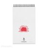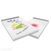 Σημειωματάριο με χοντρό χάρτινο εξώφυλλο, λευκές εσωτερικές σελίδες και μαύρο σπιράλ στο πάνω μέρος.