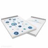 Σημειωματάριο με χοντρό χάρτινο εξώφυλλο, λευκές εσωτερικές σελίδες και μαύρο σπιράλ στο πάνω μέρος.