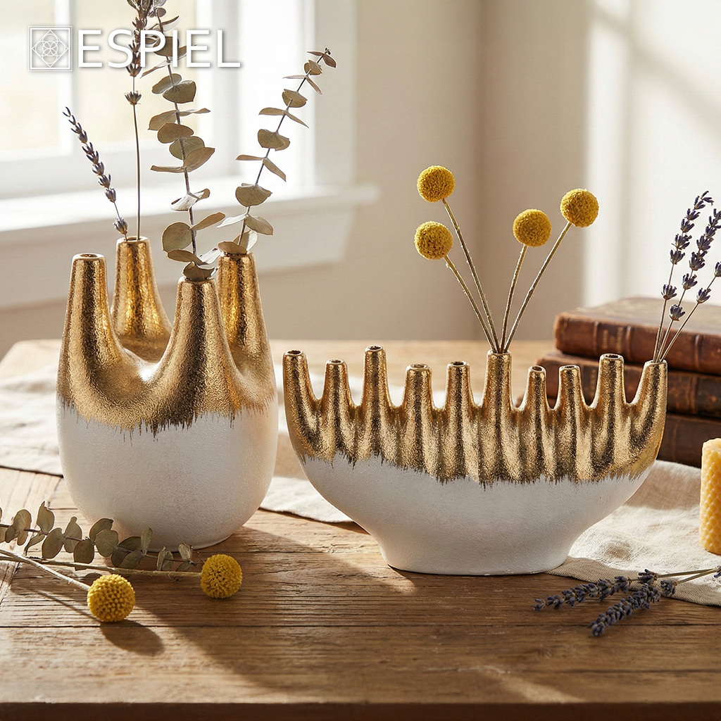 ΒΑΖΟ ΚΕΡΑΜΙΚΟ 4 ΘΕΣΕΩΝ ΧΡΥΣΟ/ΛΕΥΚΟ 15Χ15X18ΕΚ.